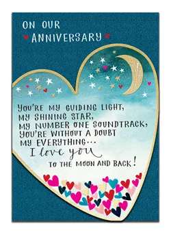 Our range includes key wedding anniversary cards from 1st anniversary, 25th (silver anniversary) to 60th (diamond anniversary). So, rest assured you’ll be able to find exactly what you’re looking for, including golden anniversary cards.