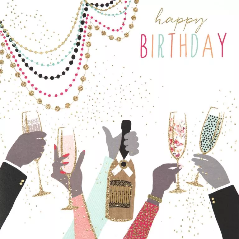 Cheers, Birthday Card with a lovely gold foil and glitter finish. Made in the UK.