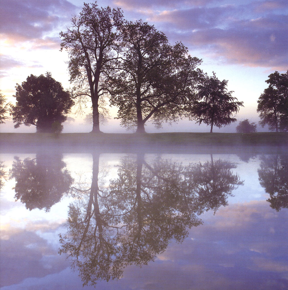 Photographic greeting card suitable for any occasion of the atmospheric view of the lake at Croome Park, Worcestershire.
