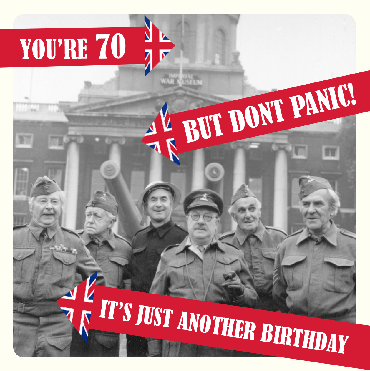 70th birthday card with an image from the Dad's Army TV show. Made in the UK.