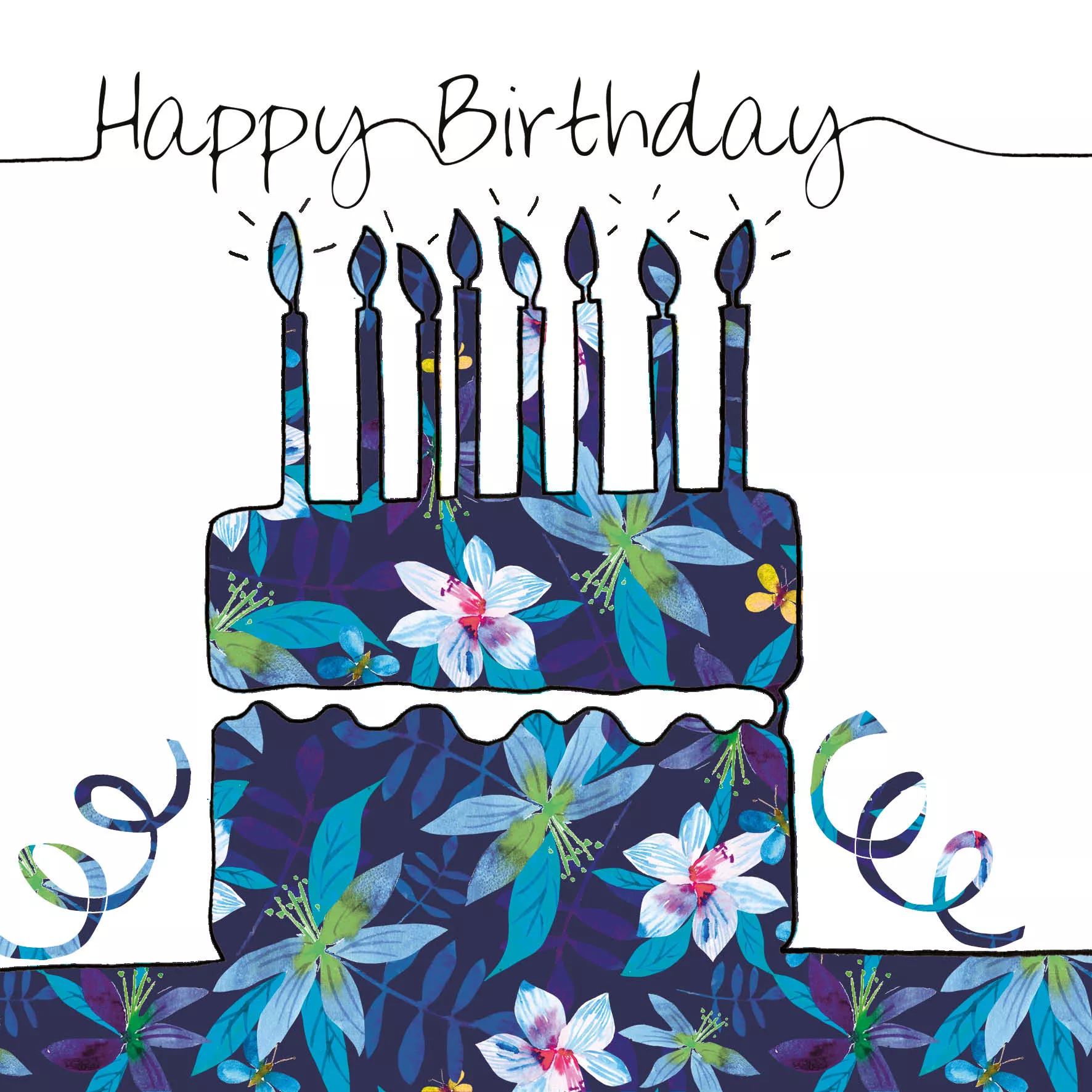 Birthday Card with a pretty cake decorated with flowers designed for us by Louise Nisbet. Printed in the UK