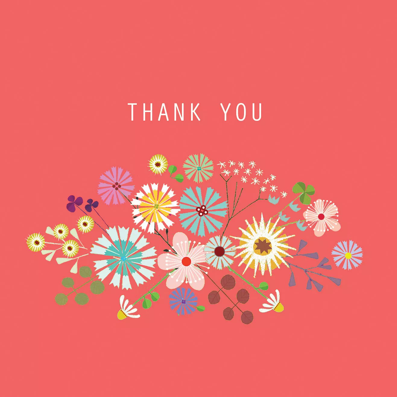 A gorgeous thank you card featuring a stunning flora design on a grapefruit pink background. Printed on 350 gsm linen weave textured board. Printed in the UK.