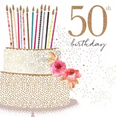50th birthday card by Louise Mulgrew with an illustration of a leopard, finished with gold foil detail. Lousie Mulgrew designs all her cards in her Brighton studio and they have won a couple of prestigious industry awards called Henries, the first in 2017 where they won Best Art Range and two in 2020, Best Art Range and Most Promising Young Designer.