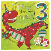 Age 3 birthday card with a lovely image of a elephant and toucan in the jungle, finished with blue foil detail. Made in the UK.