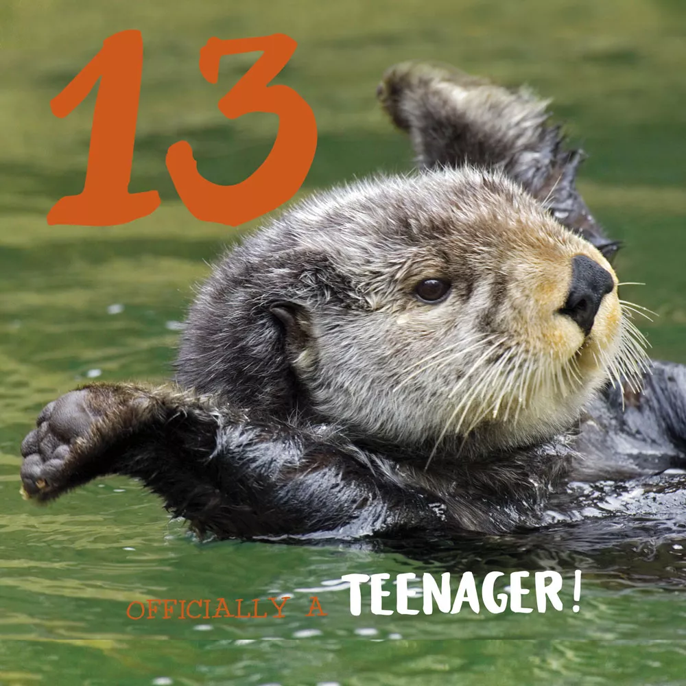13th birthday card featuring an image of an otter and the caption ''Officially a teenager!"