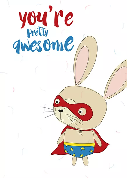 Fun greeting card suitable for any occasion with an image of a bunny wearing a superhero costume. This card is designed by the lovely people at Dandelion Stationary in their small Derbyshire studio. It is made with luxury board, sourced from a mill in the Lake District. The envelopes are made from either recycled or FSC paper.