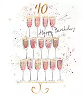 40th birthday card by Louise Mulgrew with an illustration of a racoon, finished with gold foil detail. Lousie Mulgrew designs all her cards in her Brighton studio and they have won a couple of prestigious industry awards called Henries, the first in 2017 where they won Best Art Range and two in 2020, Best Art Range and Most Promising Young Designer.