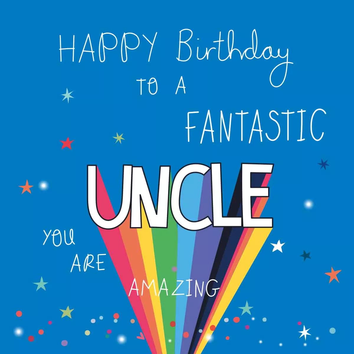 Uncle birthday card with an image of a rainbow beams. Made in the UK.