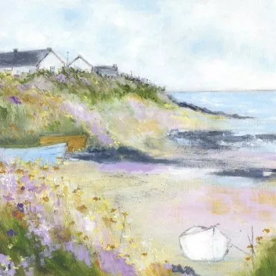 Blank inside greeting card suitable for any occasion which features a beautiful floral watercolour painting by the artist Sue Fenlon. Made in the UK.