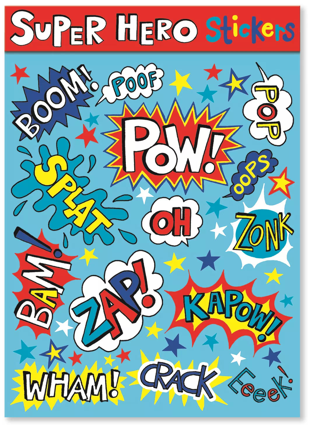 This eye-popping sticker book contains 4 sheets of super hero themed shaped stickers totalling 80 stickers per book. Each sticker sheet is perforated at the top and the cover is gloss laminated.