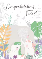 New baby twins card with an image of two baby bears. Finished with glitter detail. This card is designed by the lovely people at Dandelion Stationary in their small Derbyshire studio. It is made with luxury board, sourced from a mill in the Lake District. The envelopes are made from either recycled or FSC paper.